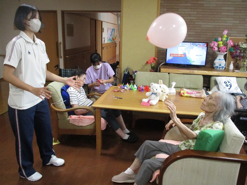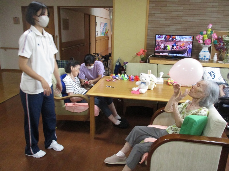 実習生さんと風船バレーを楽しまれた入居者様🤗