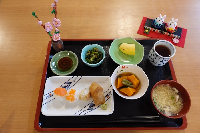 昼食は、手まり寿司を提供しました。
